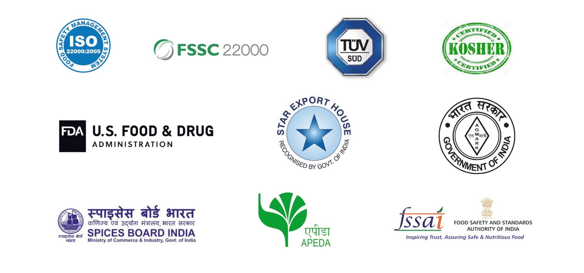 Our manufacturing facility adheres to the highest manufacturing standards across all spectrums and is accredited with FSSC22000 and ISI 22000:2005.